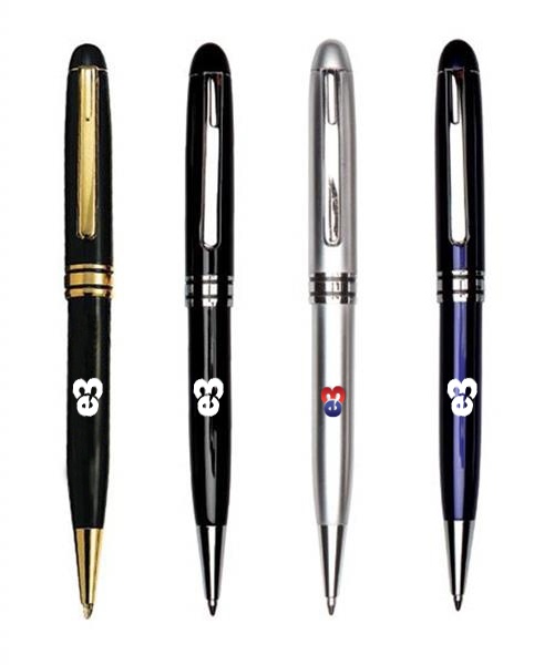 Metal twist-action ballpoint pen with chrome trim.