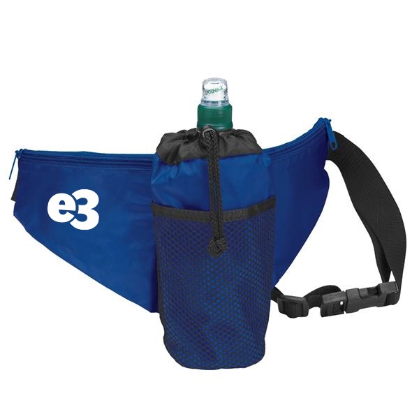 Enjoy your H2O on the go with this water bottle fanny pack! This convenient and eye-catching item is made of 70-denier nylon and comes with an insulated water bottle holder, pockets on the side and front and a waist strap adjustable to 44″. What a great product for runners, festival or amusement park goers and so much more! It measures 17″ x 7 1/2″. Water bottle not included.